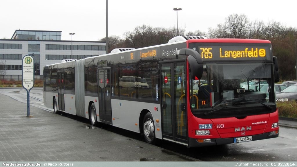 Fahrzeug-Ansicht zurück Wg. 8363 (D-LC 8363)von: Rheinbahn, DüsseldorfFahrzeugdatenHersteller, Typ: MAN NG 363 / A23 Lion's CitySP: nicht bekanntErstzulassung: nicht bekanntFotos 01.02.2014, Nico Rütters Langenfeld (S) 10.03.2014, Sven-Oliver Nerlich zurück