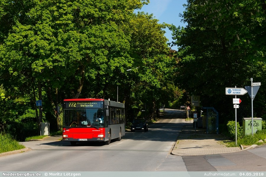 Nur wenige Tage nach Linienwegs-Änderung der OL 772 befindet sich Wagen 7403 hier in ...